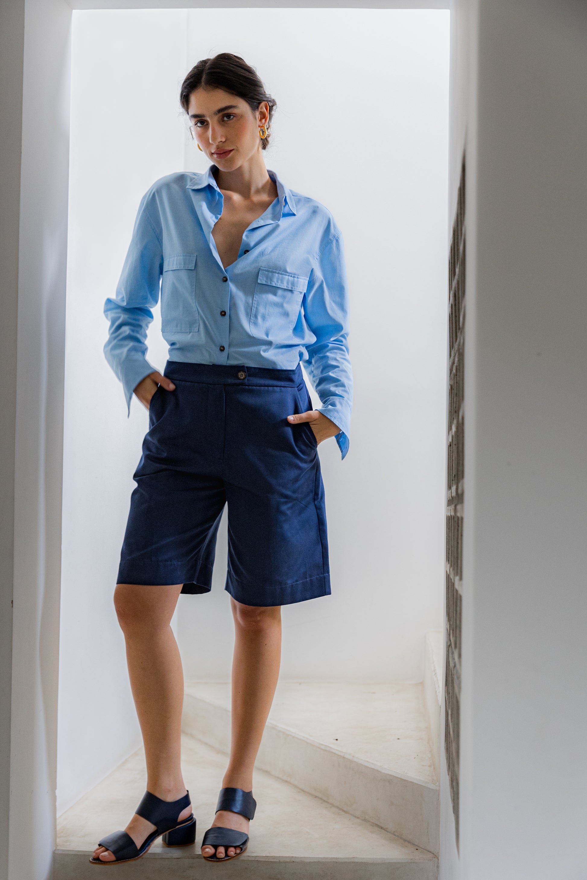 A Bermuda Fresia é a escolha para dias mais quentes. Com um corte impecável de alfaiataria que proporciona liberdade de movimento, é perfeita para qualquer momento. Seu design casual e toque leve fazem dela uma peça essencial para um verão cheio de frescor e conforto.Possui bolsos laterais e traseiros.