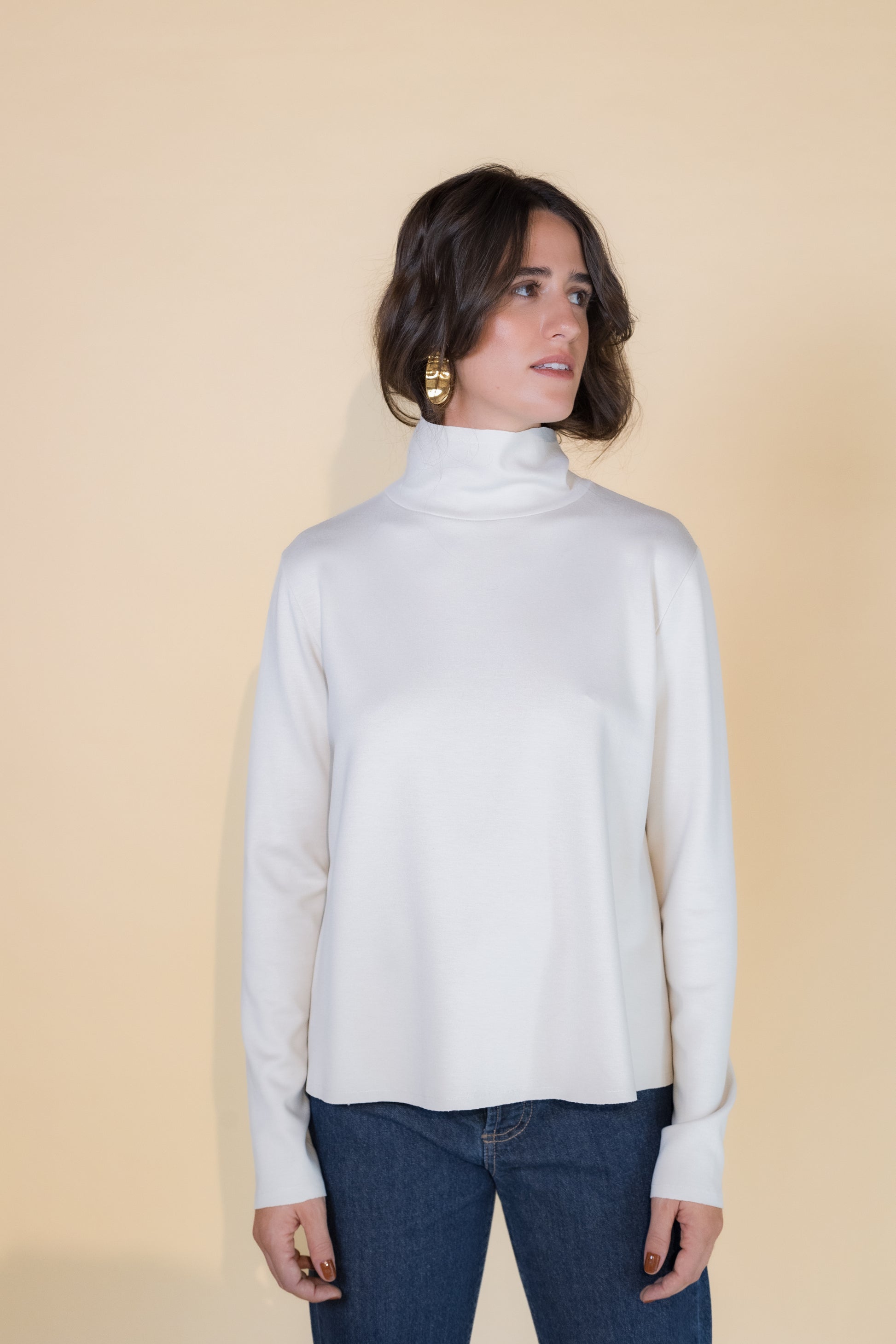 A blusa Jacque pode ser usada tanto como blusa quanto como casaco, dependendo da ocasião. Nos dias mais frios, a peça Jacque é perfeita para usar por cima de uma manga longa ou regata, garantindo conforto e elegância ao mesmo tempo. Com gola alta, essa peça de malha tipo neoprene apresenta um toque elegante que a torna perfeita para diversas ocasiões.Ela é uma peça clássica da GENTIL.