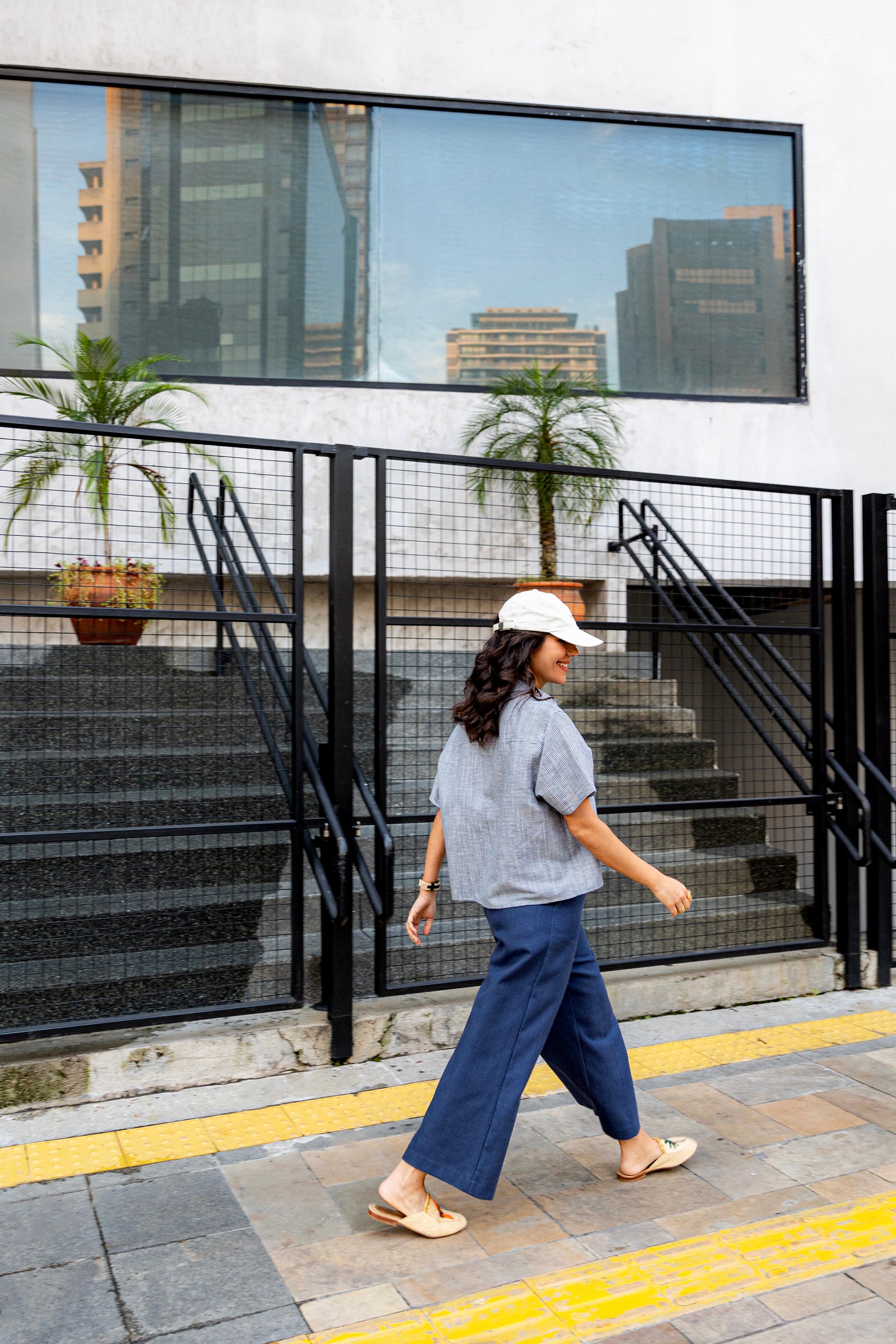 A Calça Alameda oferece uma combinação de estilo e conforto com sua modelagem mais curta e bolsos laterais. Chique e prática, essa peça é ideal para o dia a dia e está disponível em duas variações de tecidos premium. A versão em areia, feita de viscose ECOVERO e algodão BCI, e a versão em azul jeans, com algodão BCI, tencel modal e linho European flax, são escolhas sustentáveis e elegantes.