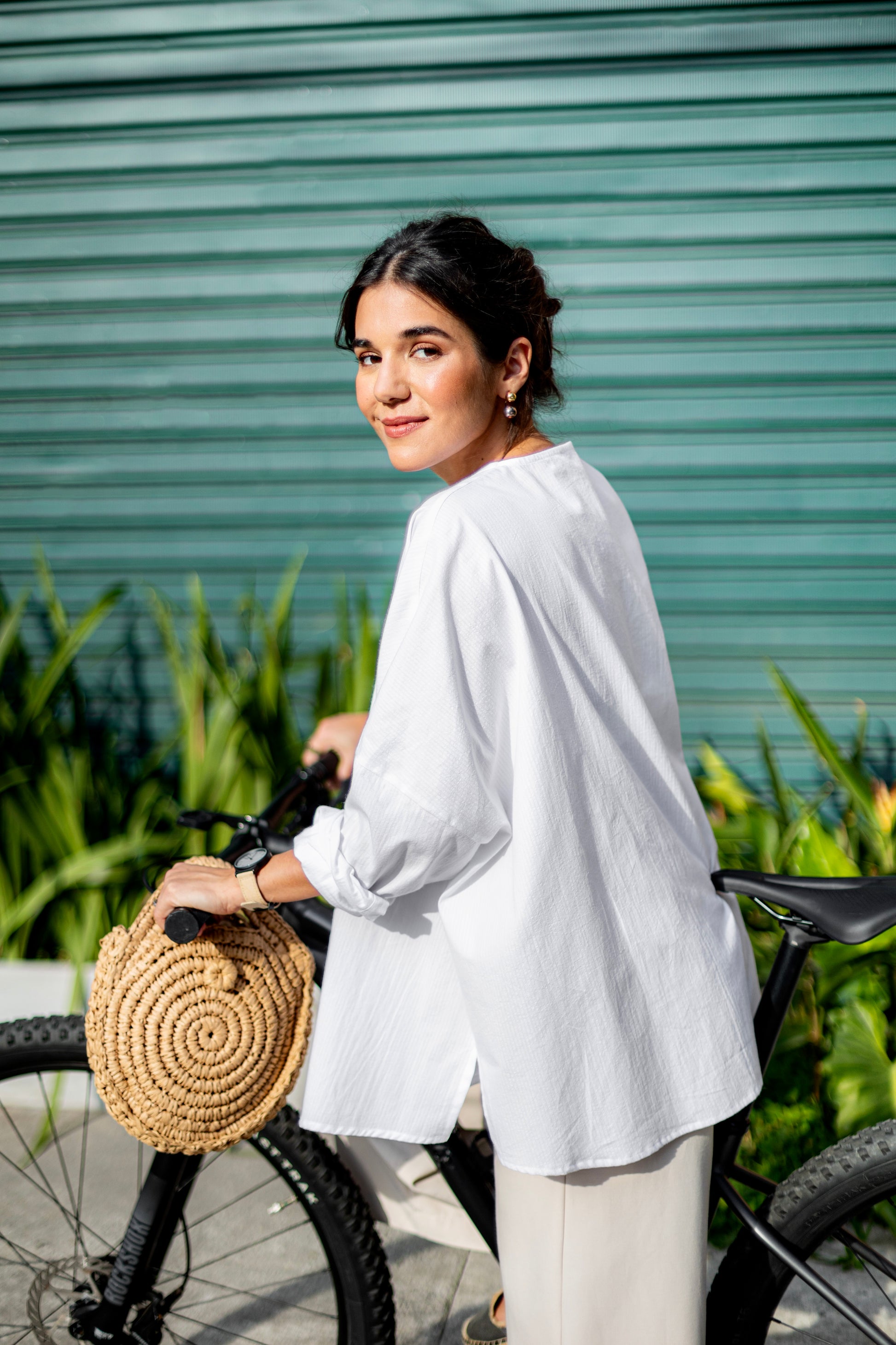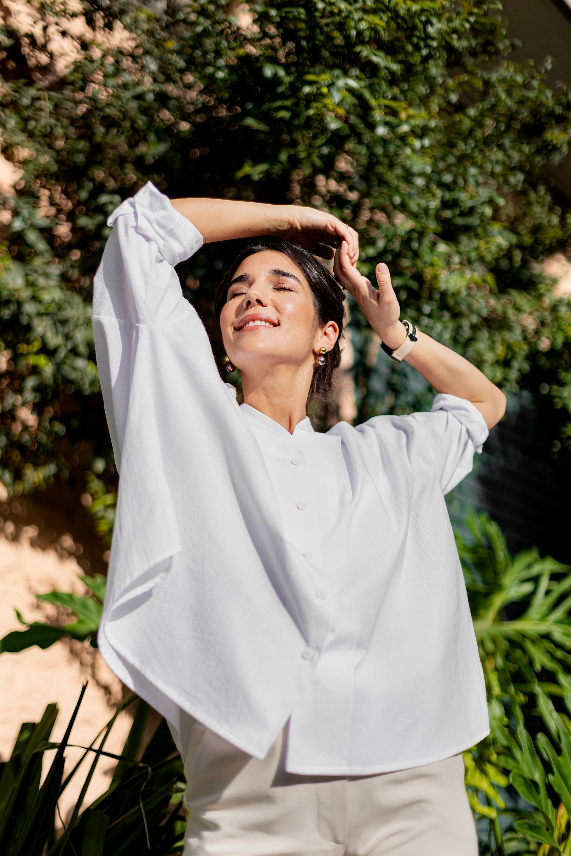 A Camisa Amora é uma escolha versátil para qualquer ocasião. Com manga longa, decote V e abotoamento frontal, essa peça está disponível nas cores branco e xadrez azul claro e branco. Feita com tecidos de textura especial, a Camisa Amora combina elegância e conforto em uma peça que se adapta a diversos estilos.