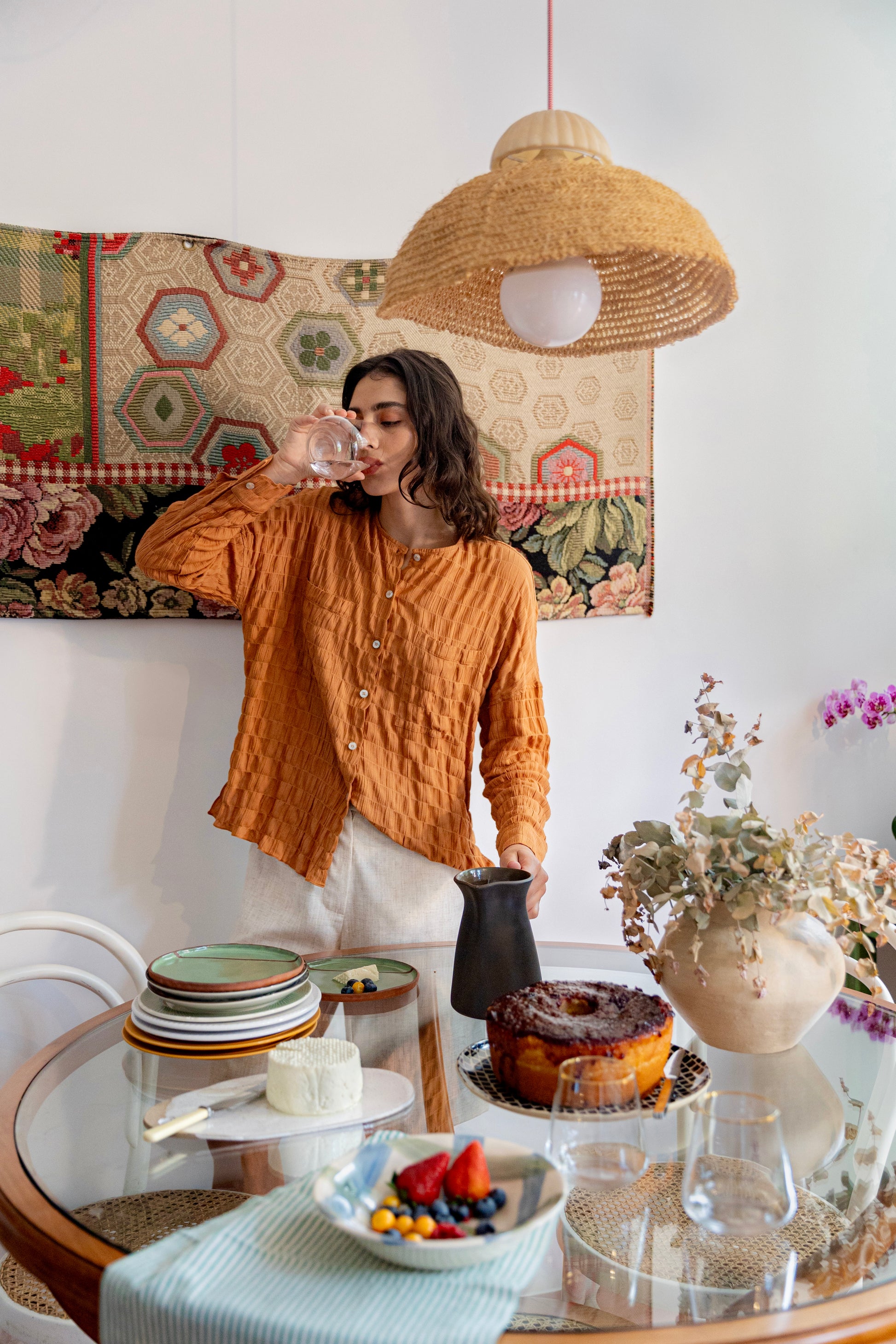 A Camisa Protea é uma peça que une leveza e elegância, ideal para compor looks clássicos com um toque de frescor. Com detalhes delicados e acabamento impecável, esta camisa é perfeita para quem busca uma opção versátil e sofisticada para o guarda-roupa.Foi produzida com tecido que possui um efeito visual enrugado proporcionando uma textura diferenciada , com um caimento leve e sofisticado.
