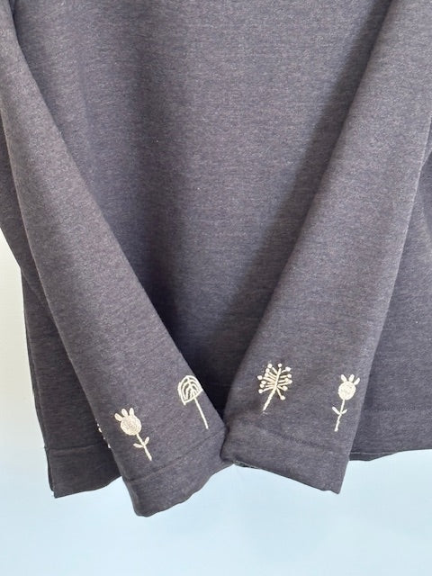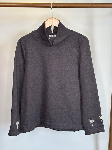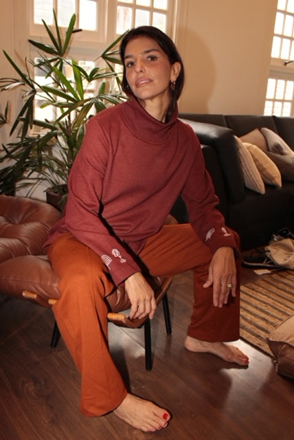 O Casaco Glacier é sofisticado produzido em moletom aflanelado, oferecendo conforto térmico e toque suave. As mangas possuem bordados feitos à mão. Ideal para composições elegantes e contemporâneas nos dias mais frios.