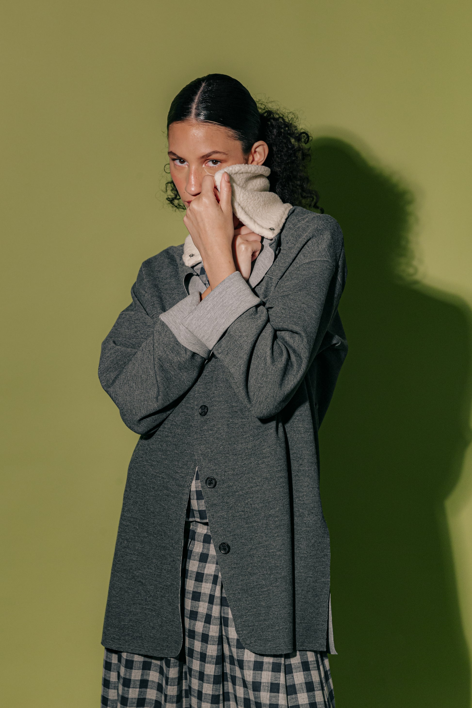 O Casaco Balanço é um produto confeccionado em malha cinza mescla de alta qualidade, que proporciona conforto e estilo ao usuário. Além disso, apresenta uma gola de pelo off com botão de pressão pequeno para fechamento, o que o torna ainda mais elegante e sofisticado. Os botões frontais permitem um fechamento seguro e ajustável, enquanto os passantes traseiros acrescentam um toque de charme e delicadeza à peça. Para completar, os acabamentos a fio dão um acabamento fino e cuidadoso aos detalhes. Este casaco é uma escolha excelente para quem procura uma peça versátil e elegante para compor looks de inverno com muito estilo.