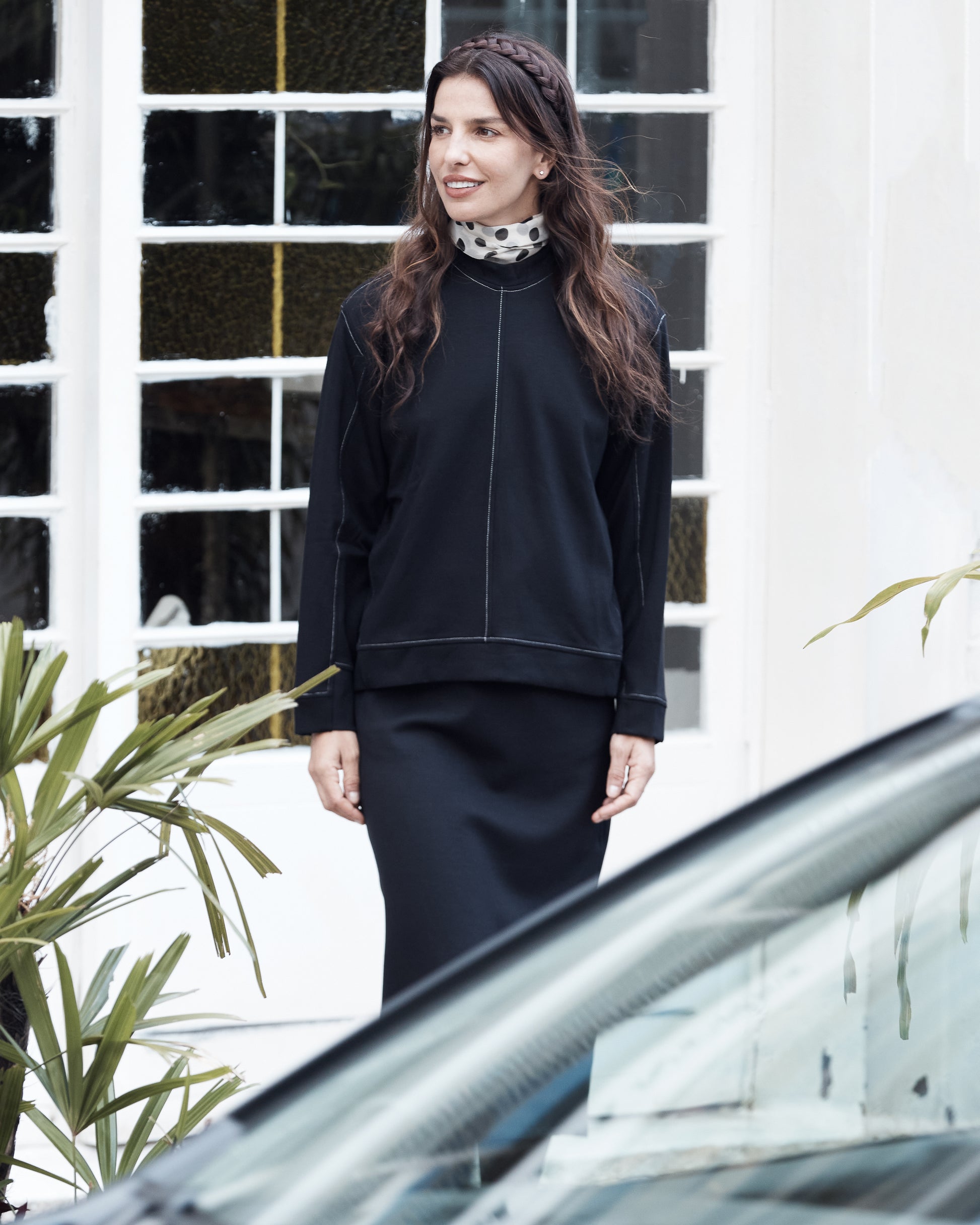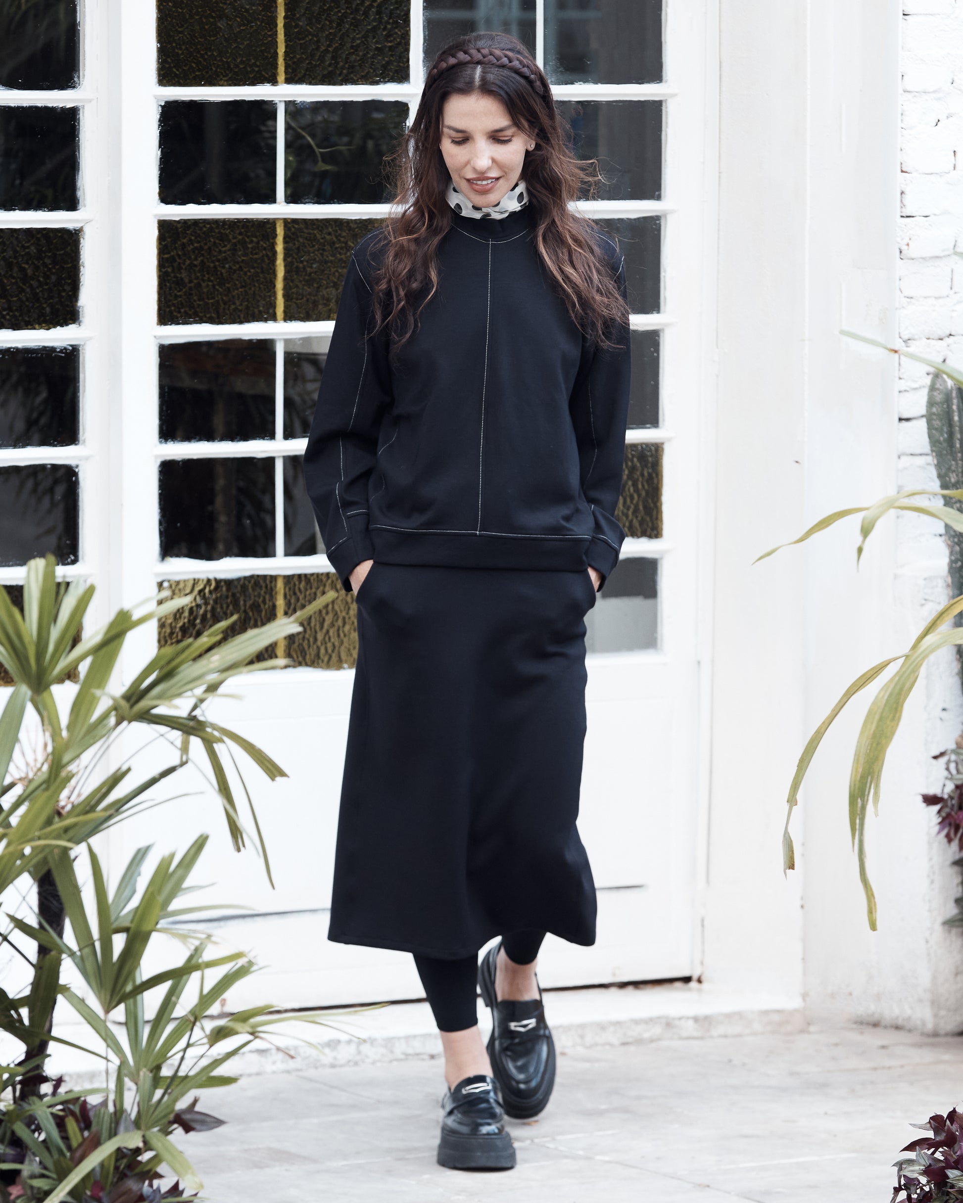 O Casaco Feminino Escalada foi produzido em malha com aspecto dublado, com leve volume e ótimo toque. Possui recortes no corpo e mangas trazendo um estilo despojado. Acabamentos pespontados e a cor preta é feita com linha contrastante.