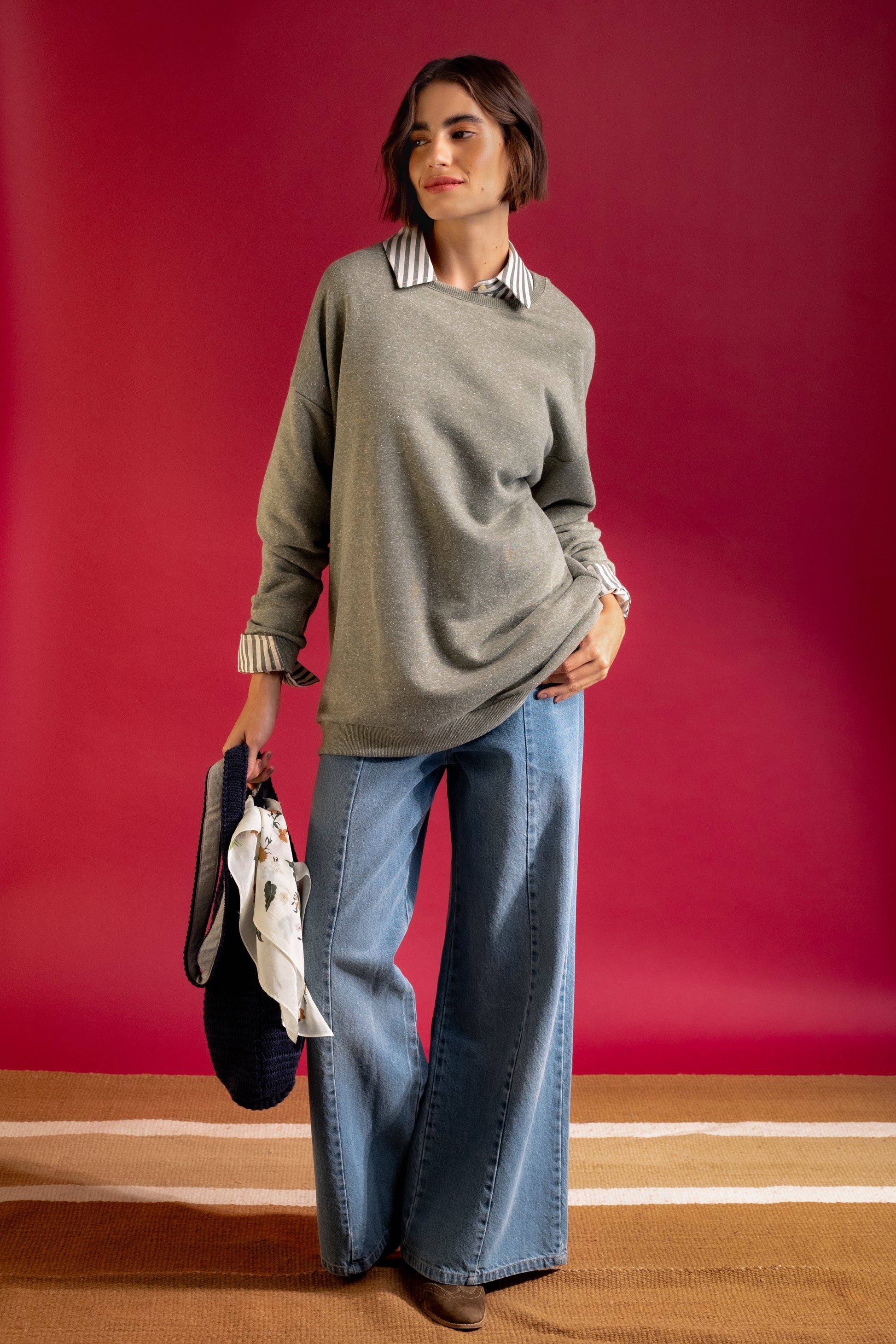 O Casaco Moletom Laila com seu design alongado é perfeito para combinar com saias midi, jeans, vestidos ou qualquer outra peça que você deseje. Este moletom não é apenas prático, mas também extremamente versátil, oferecendo múltiplas possibilidades de uso para looks casuais ou mais arrumados. A etiqueta silcada adiciona um toque de exclusividade, enquanto a barra, os punhos e o decote com rib garantem um ajuste confortável e um acabamento estético impecável. O Casaco Moletom Laila proporciona uma opção despojada e charmosa para qualquer guarda-roupa.