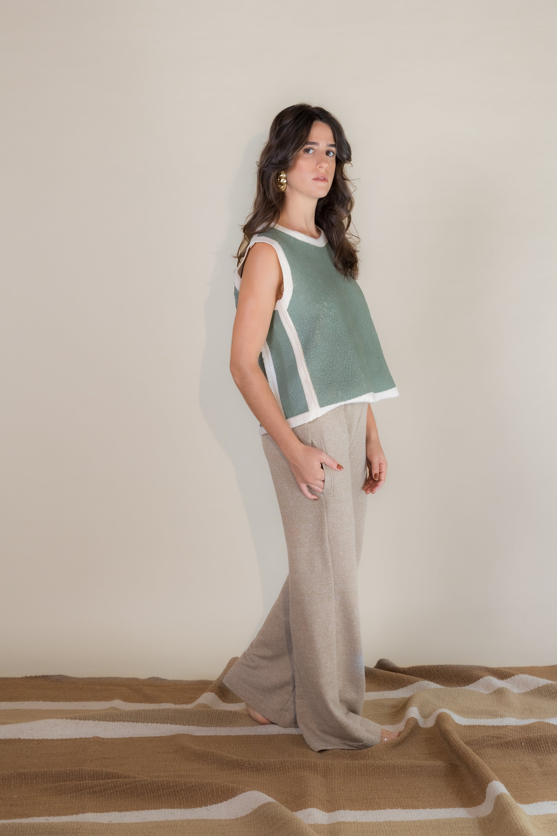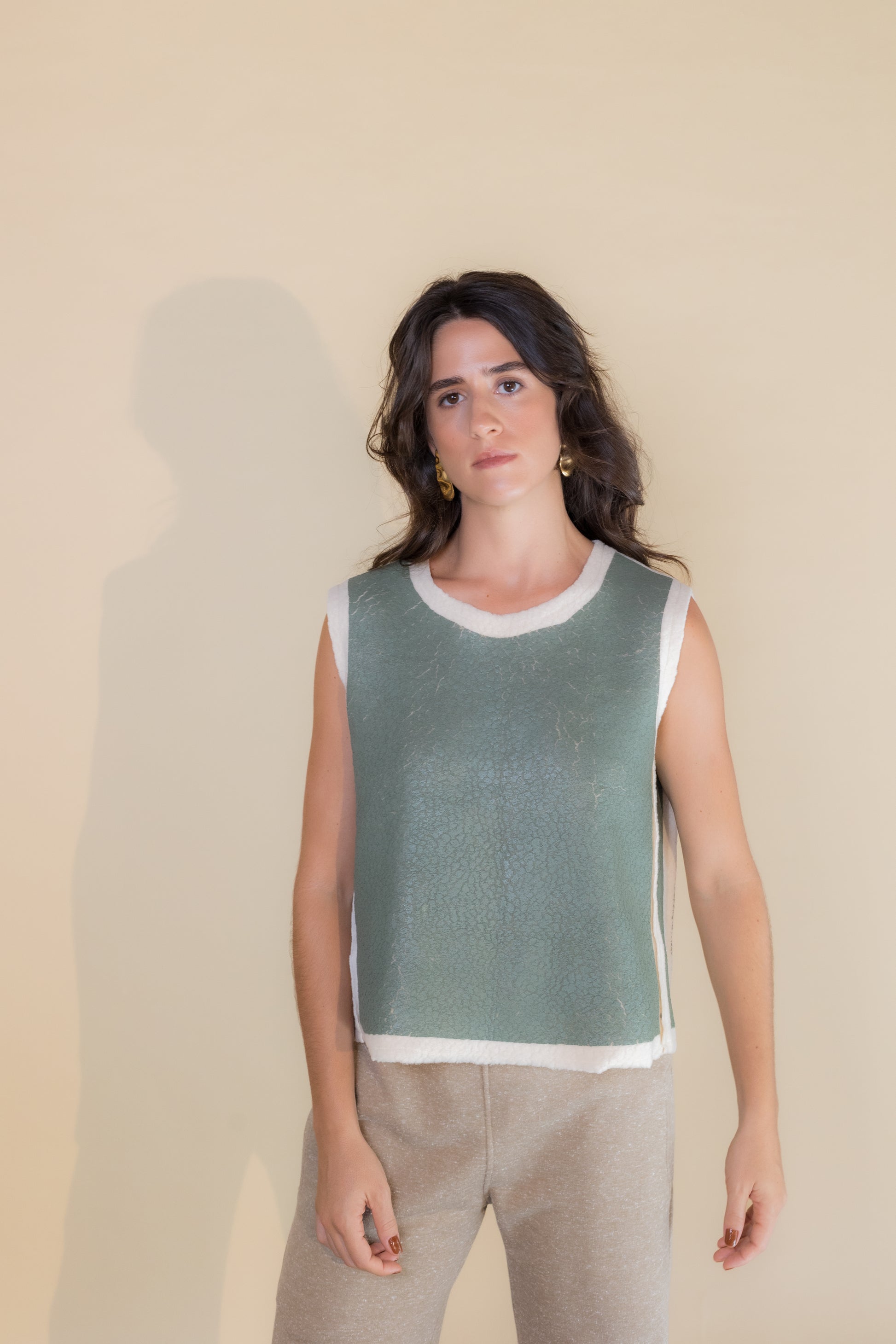 O Colete Myriam é uma expressão de arte e individualidade. Estampado à mão usando a técnica Muquén, cada colete é uma peça única, resultado de um processo artesanal meticuloso. Feito com malha de pêlo, oferece conforto e calor, perfeito para ser usado sobre camisas ou sozinho. Os acabamentos a fio reforçam a exclusividade e o charme dessa peça excepcional.