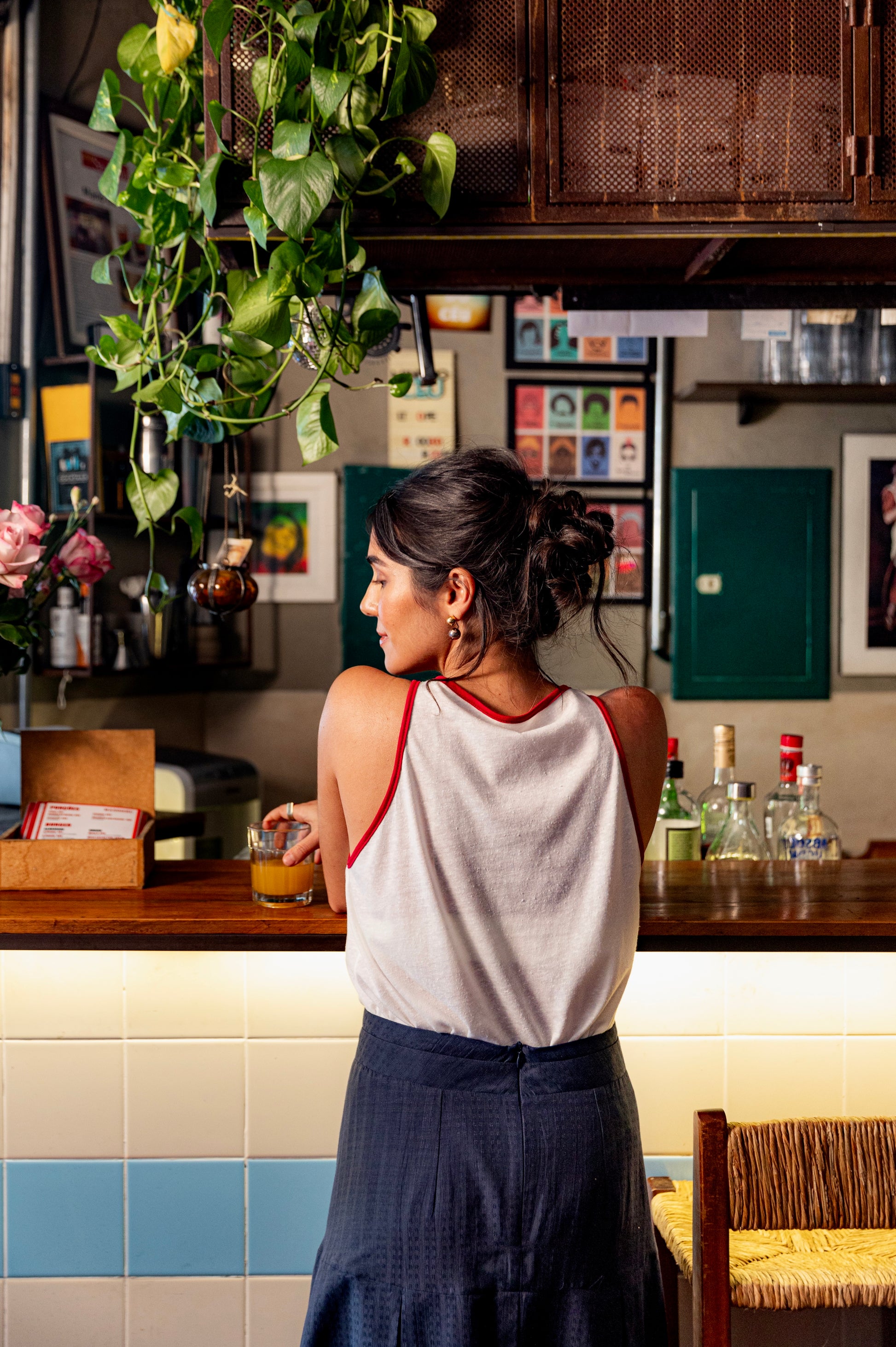 A Regata Bicolor Margarida é uma peça única, com uma cava elegante adornada por galões em cores contrastantes. Disponível nas combinações branca com galão marinho ou branca com galão vermelho, essa regata de malha é uma escolha estilosa para quem busca um toque especial em seu visual.