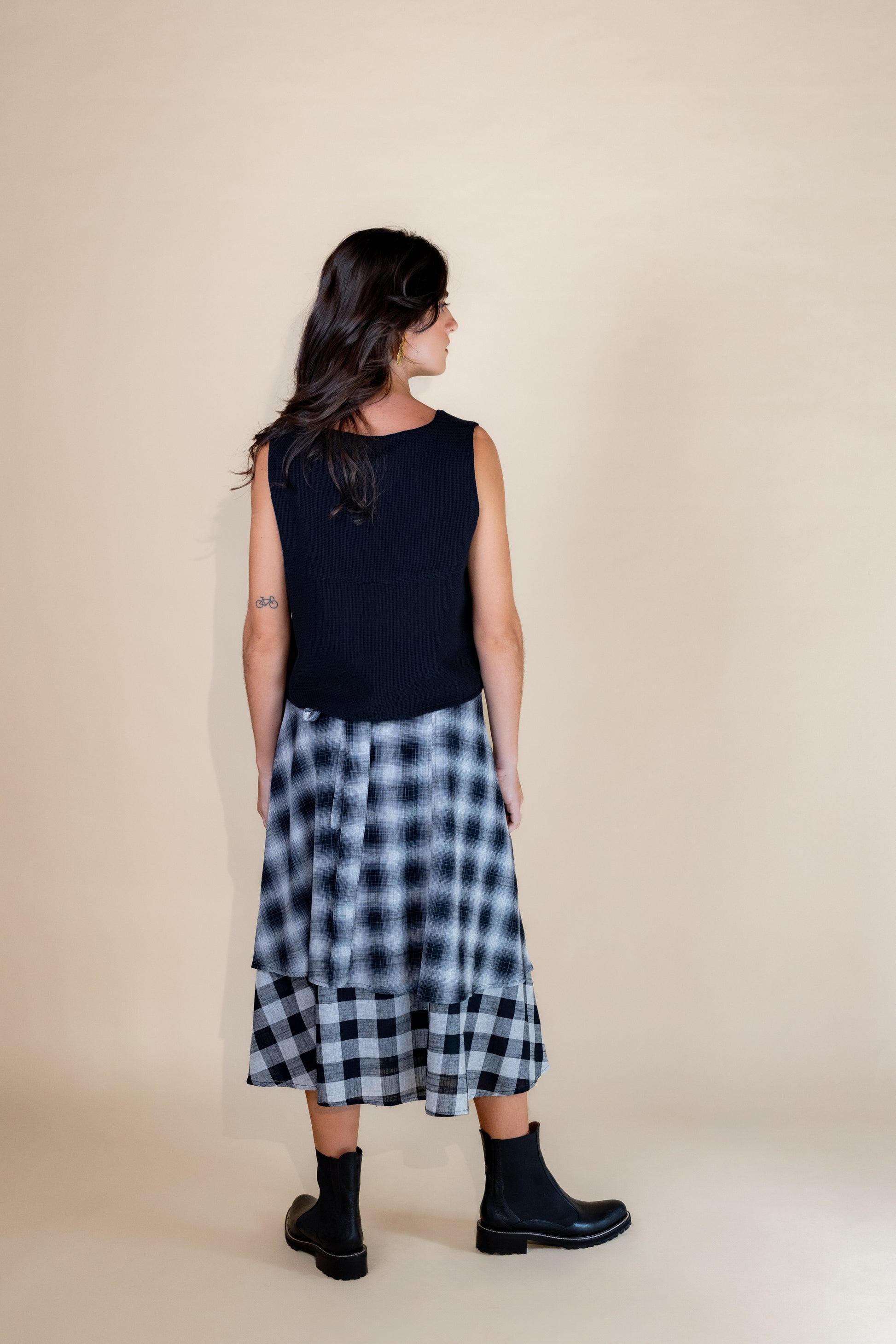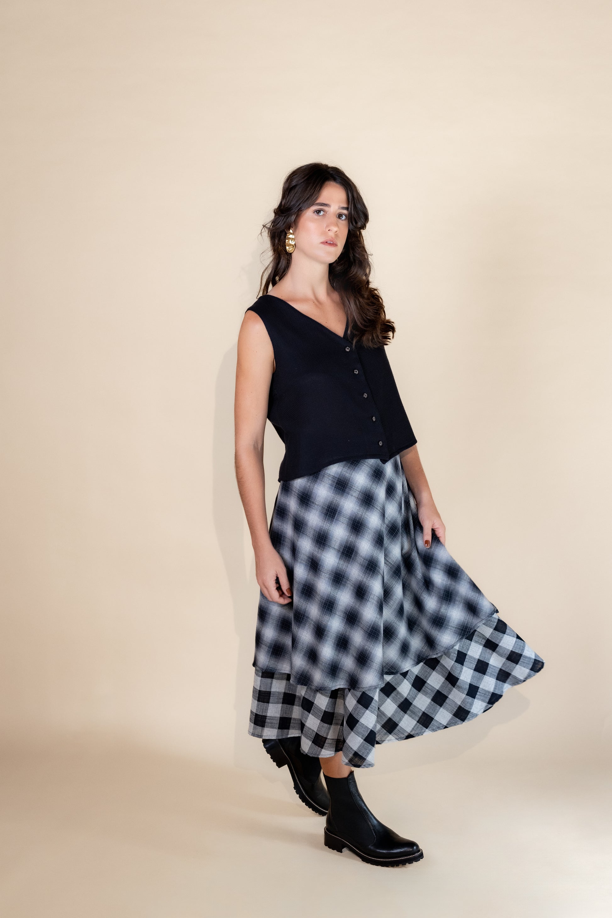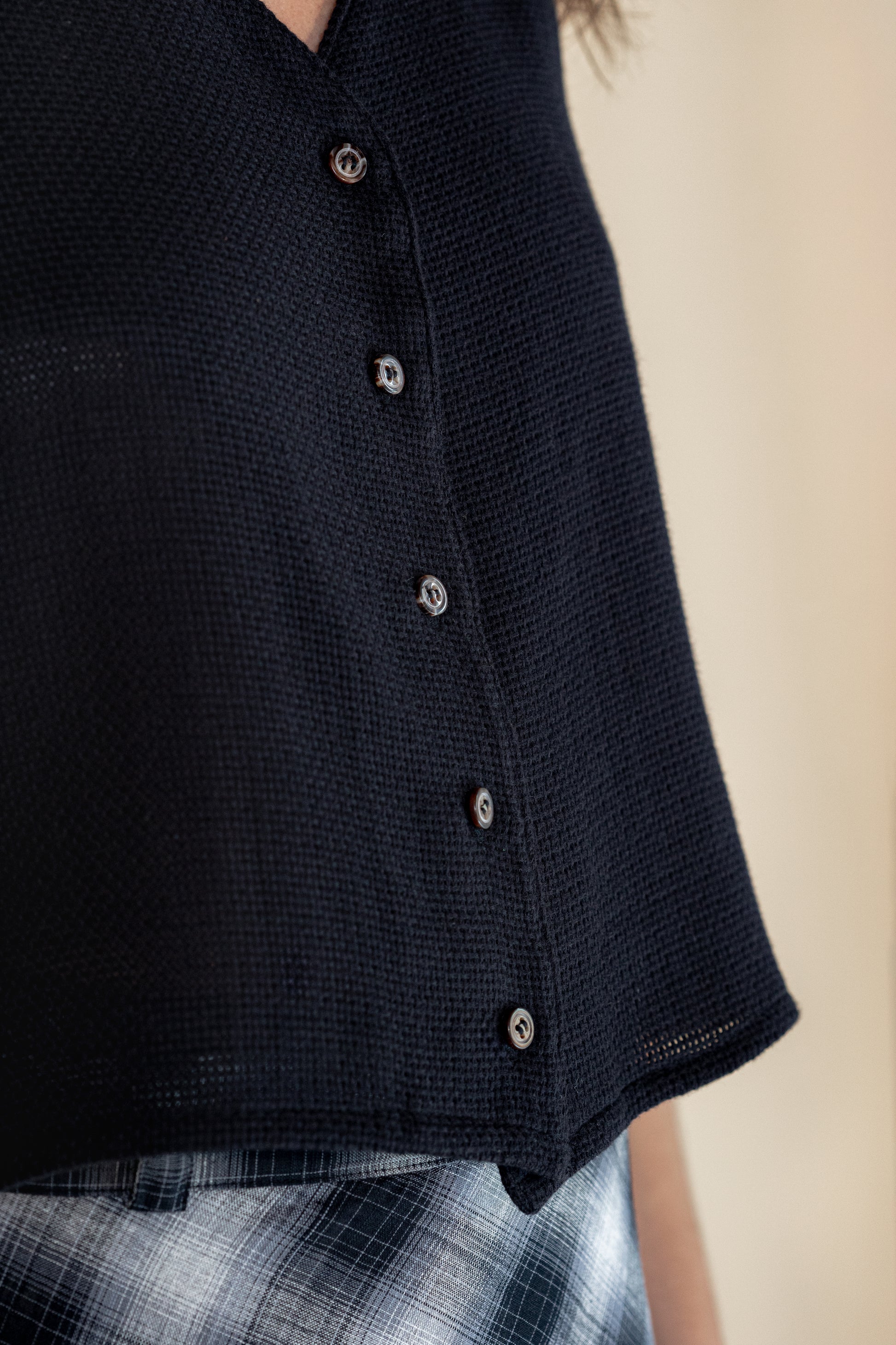 A Blusa Clara redefine a moda moderna com um design que harmoniza conforto e estilo. Caracterizada por seu abotoamento frontal e ausência de mangas, essa peça se destaca por sua modelagem solta e comprimento mais curto, projetada para um visual contemporâneo e sofisticado. Com acabamento duplo, cada detalhe é cuidadosamente pensado para realçar a beleza da blusa. Disponível em duas composições específicas, cada uma traz sua essência: a versão em preto é confeccionada em 100% algodão para quem busca simplicidade e conforto, enquanto a opção em açafrão, uma mistura de algodão, viscose e linho, oferece uma textura única e um caimento leve.