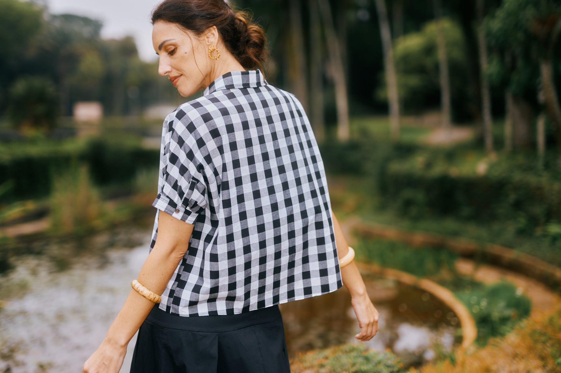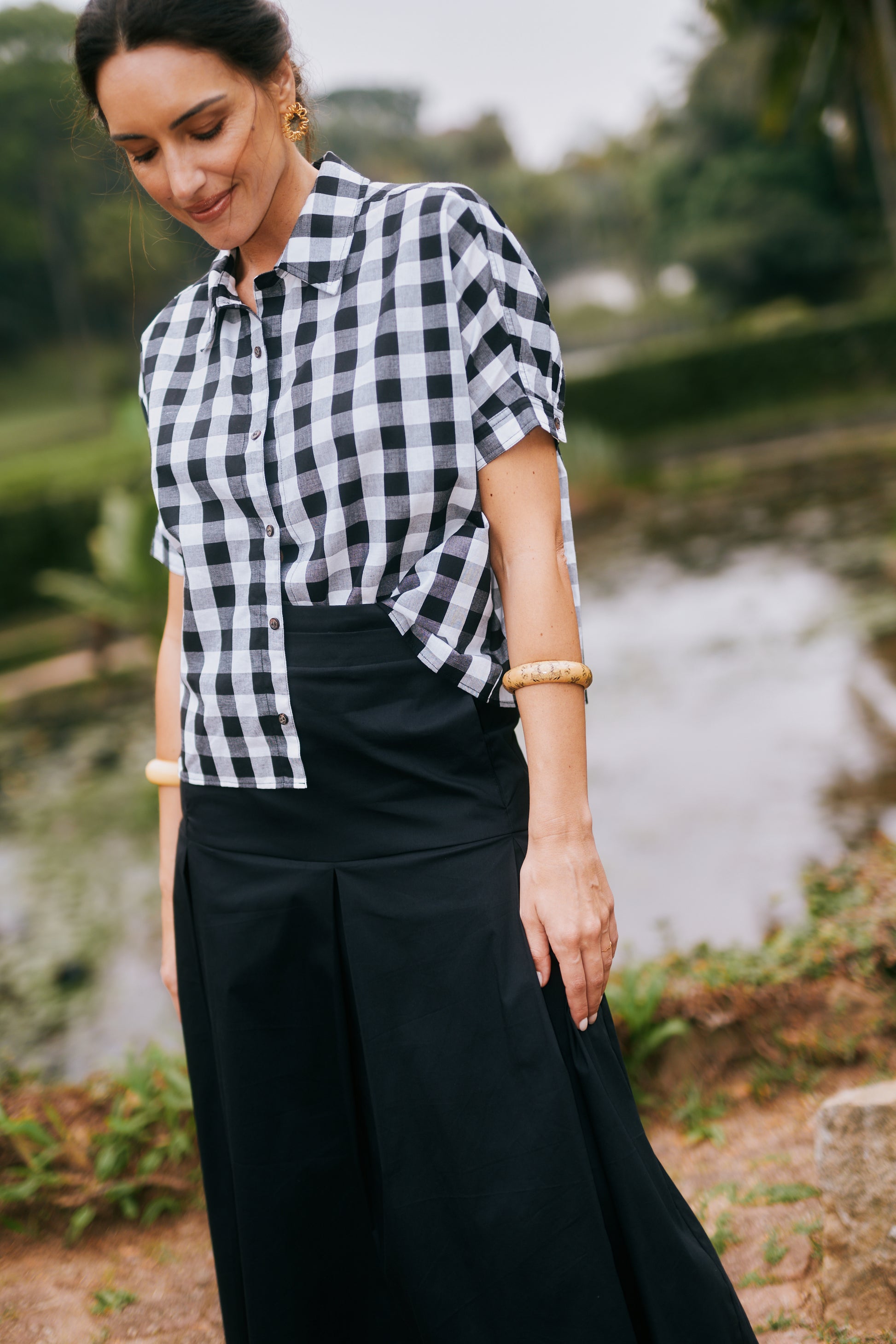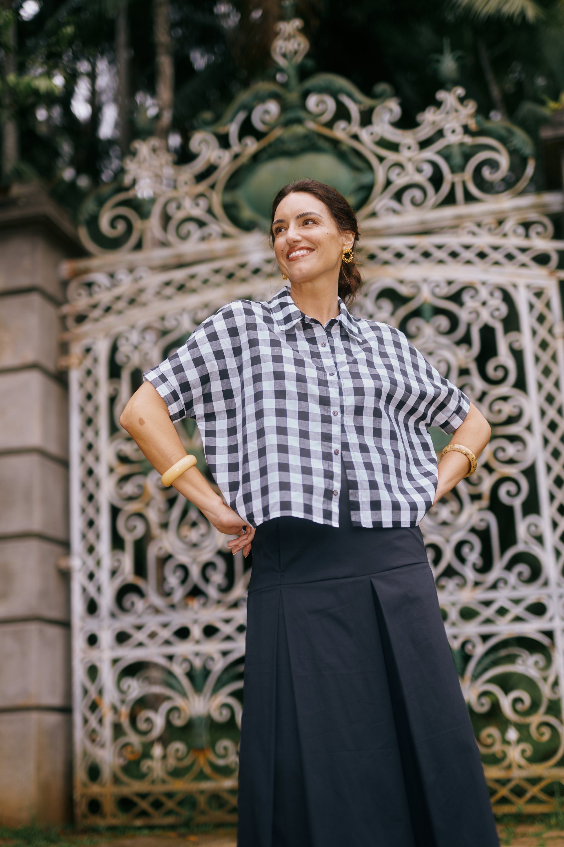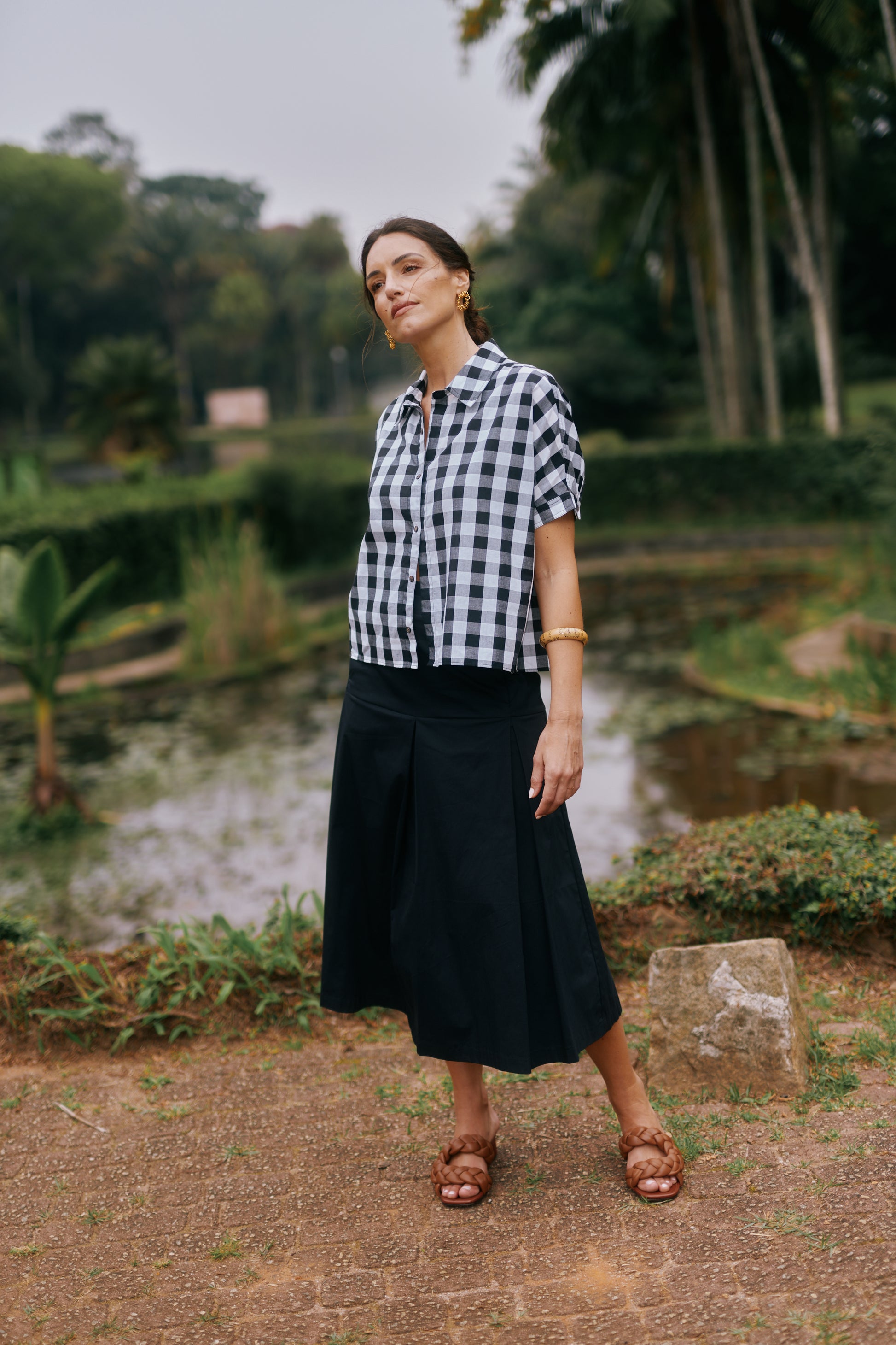 A Saia Callas apresenta modelagem que valoriza a silhueta, com cintura alta e comprimento midi. Os detalhes do cós duplo e das pregas criam uma estrutura leve, elegante, adicionando movimento. Possui bolsos frontais e fechamento com zíper invisível. Uma peça versátil, perfeita para compor tanto looks formais quanto casuais.