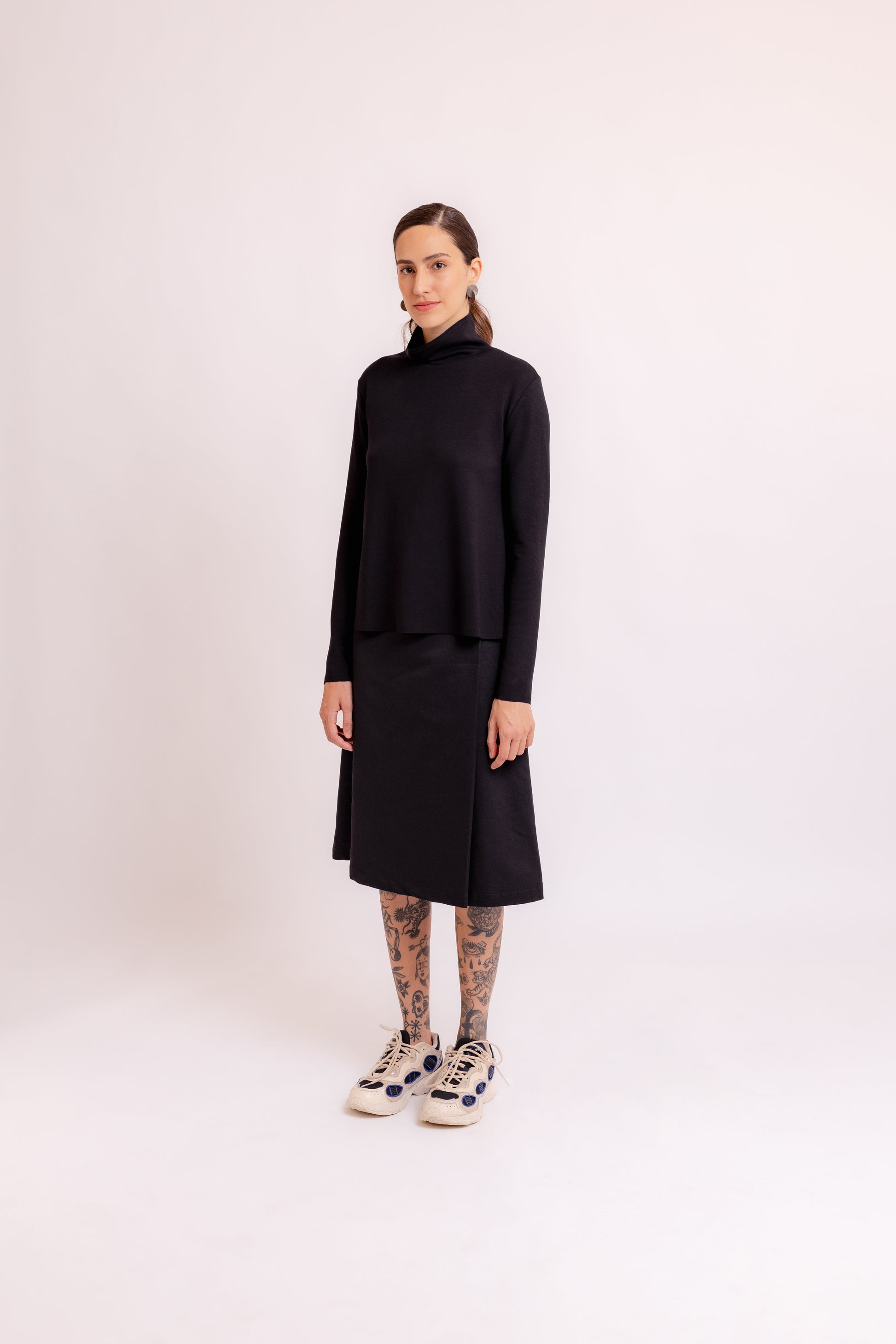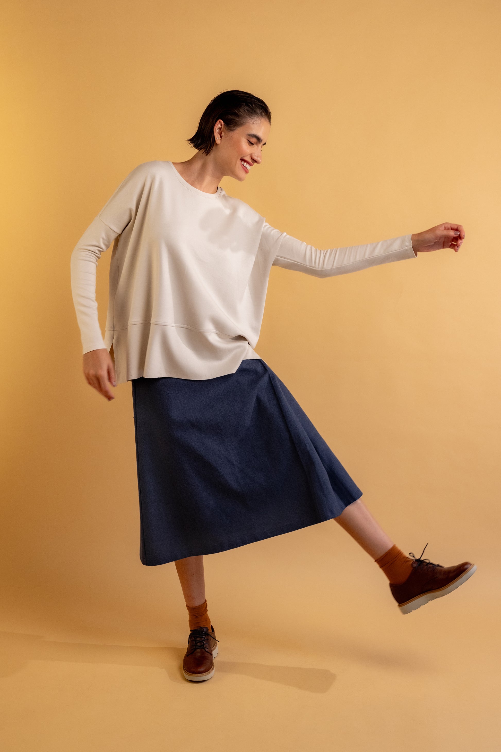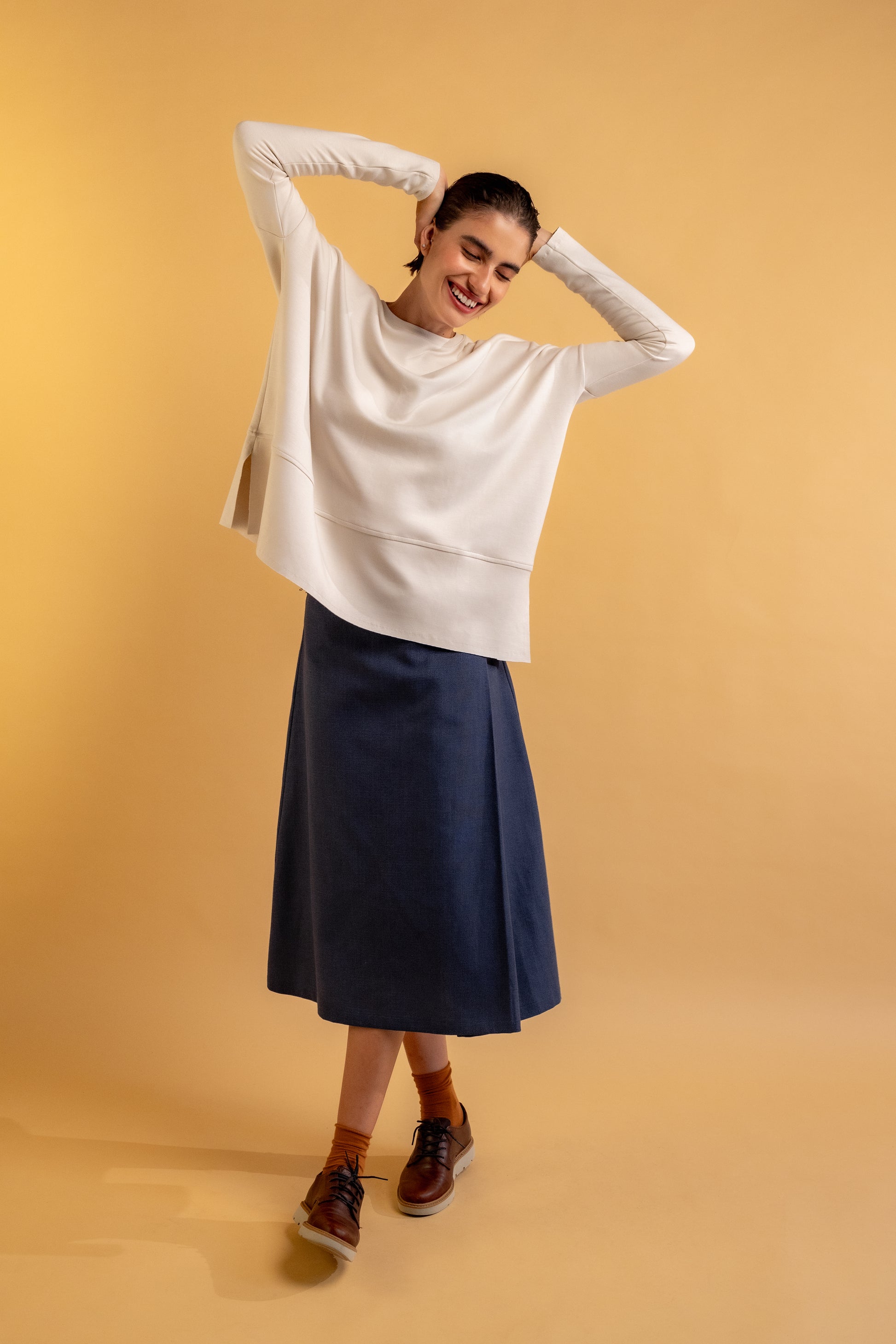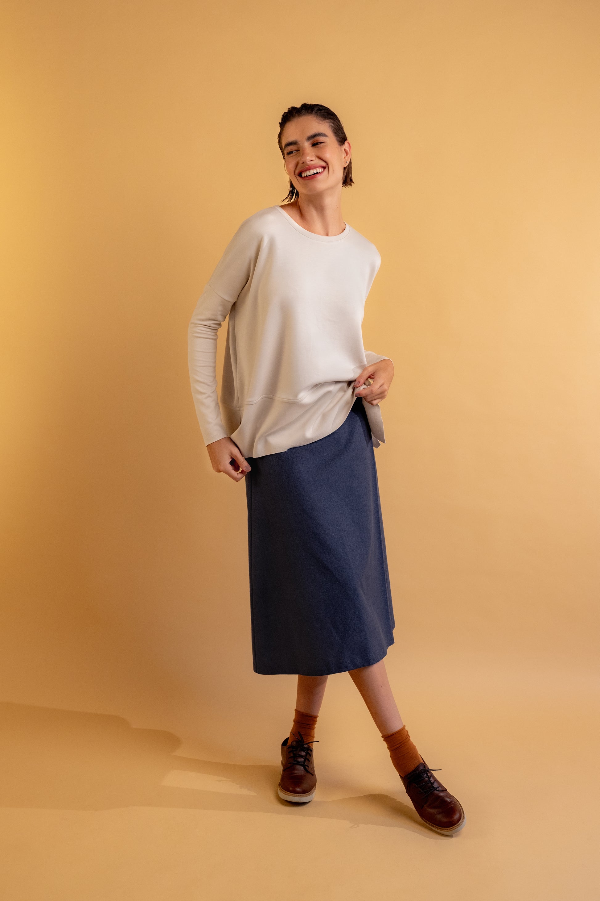 Esta peça apresenta acabamentos da barra e cós à fio, conferindo um detalhe refinado ao design. A saia possui transpasse com prega na lateral e botões de pressão para um fechamento seguro. Possui bolsos traseiros adicionando um toque de estilo clássico. Com um comprimento midi, a Saia Clarissa é atemporal e fácil de usar.