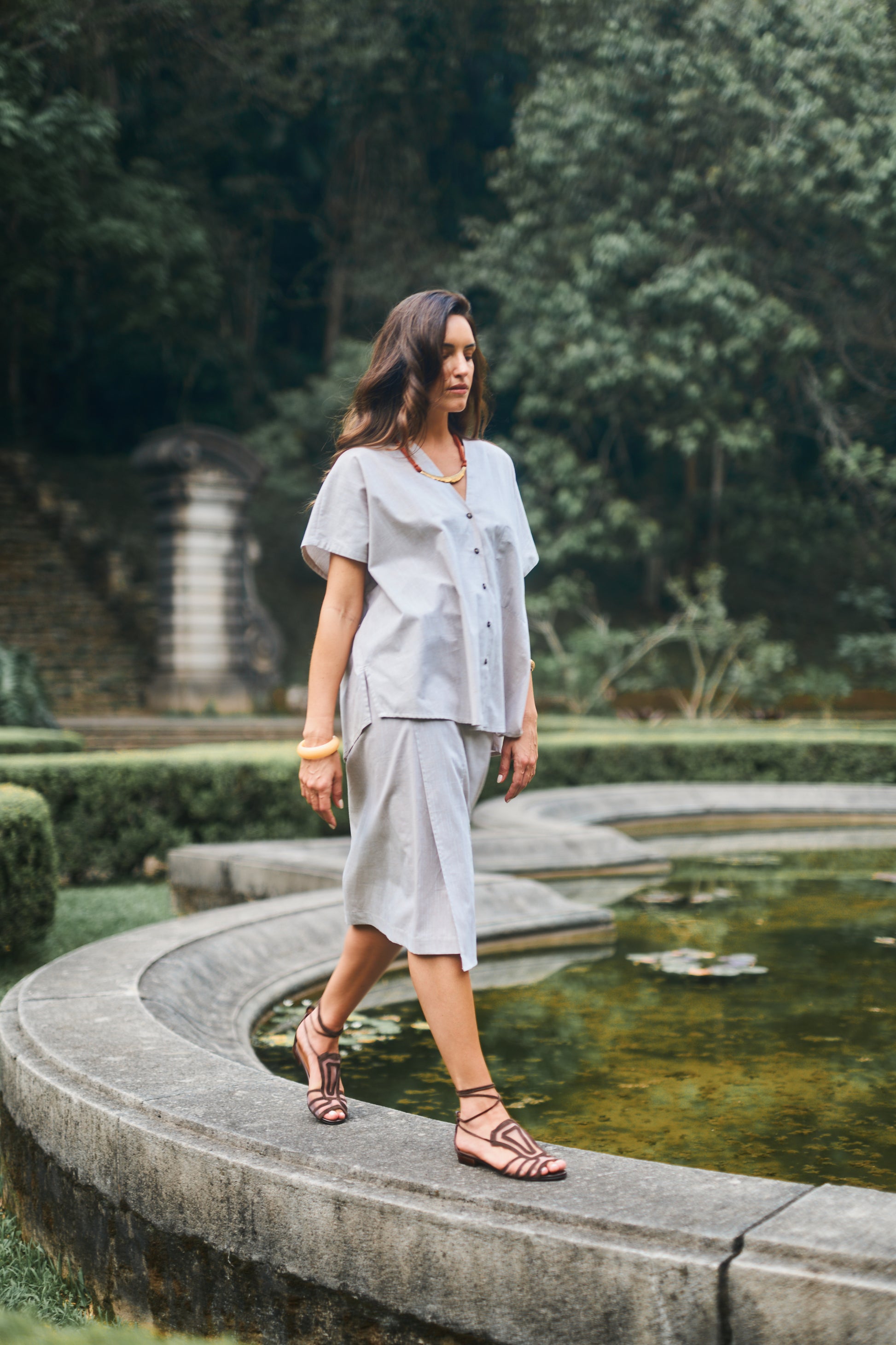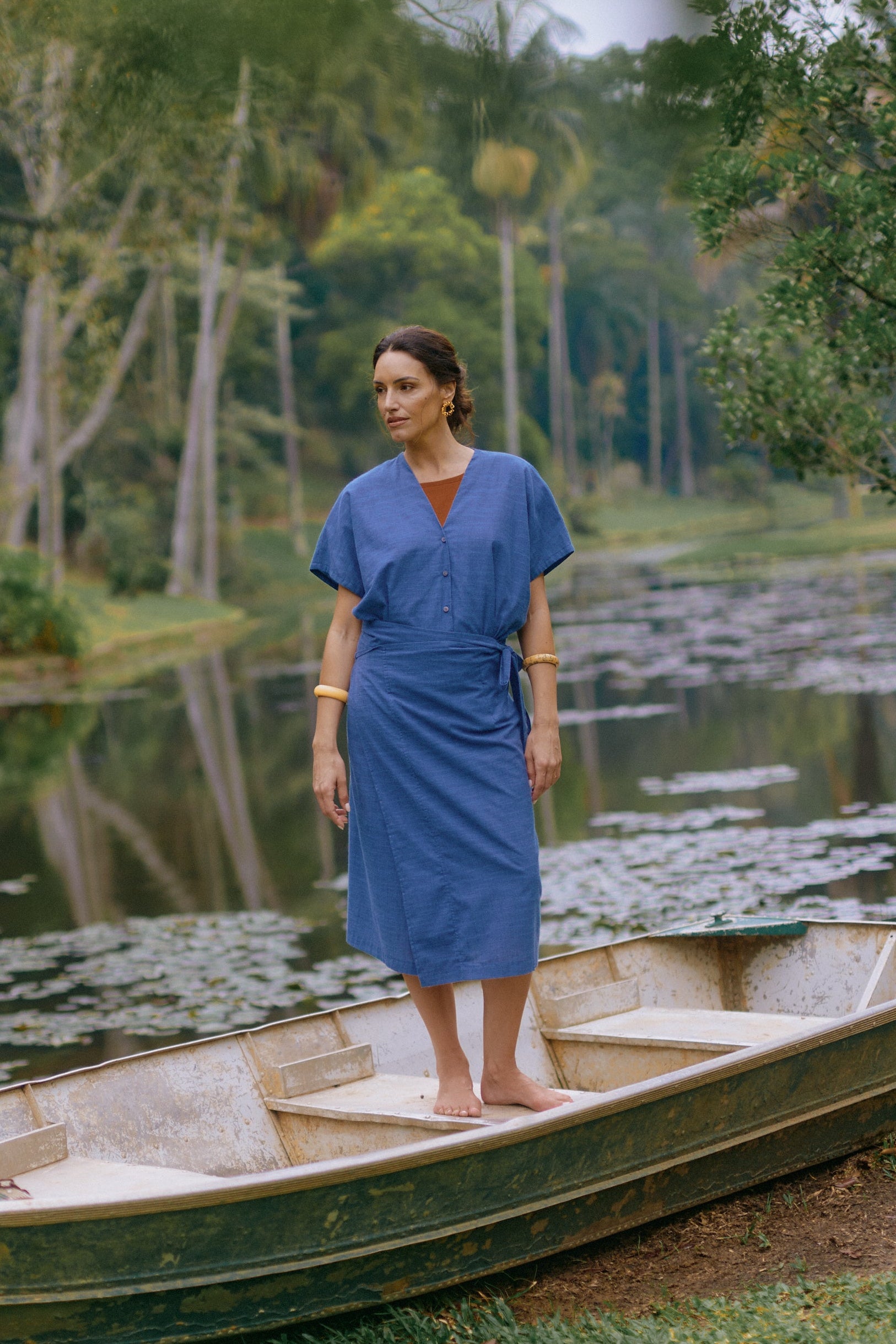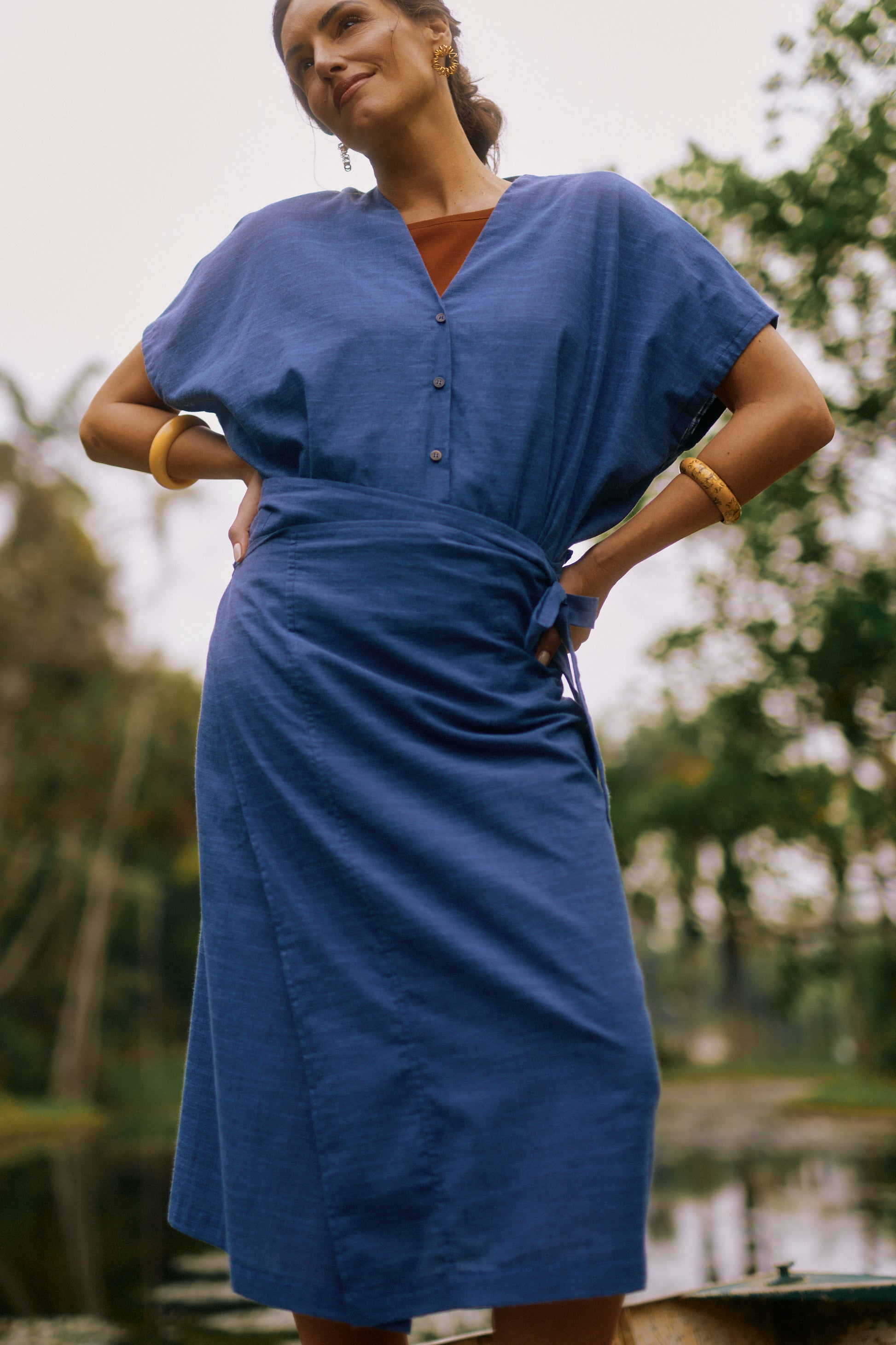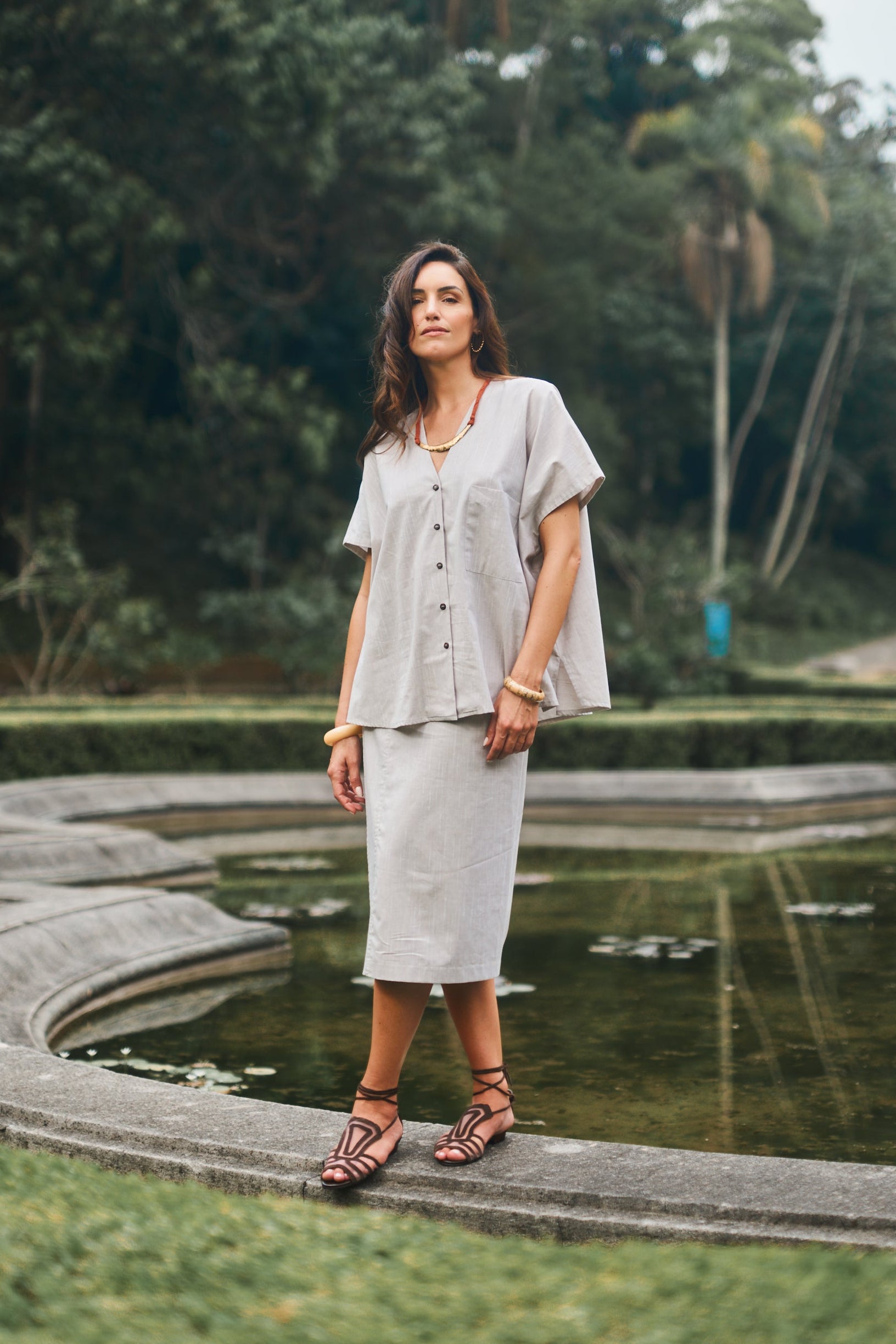 A Saia Marcia é produzida em tecido leve de algodão e está disponível nas cores cáqui e marinho. Possui transpasse com amarração lateral que permite melhor ajuste na cintura. Com comprimento midi e caimento leve, é perfeita para aproveitar o verão com estilo e conforto. Use com a blusa Montenegro para um estilo elegante.