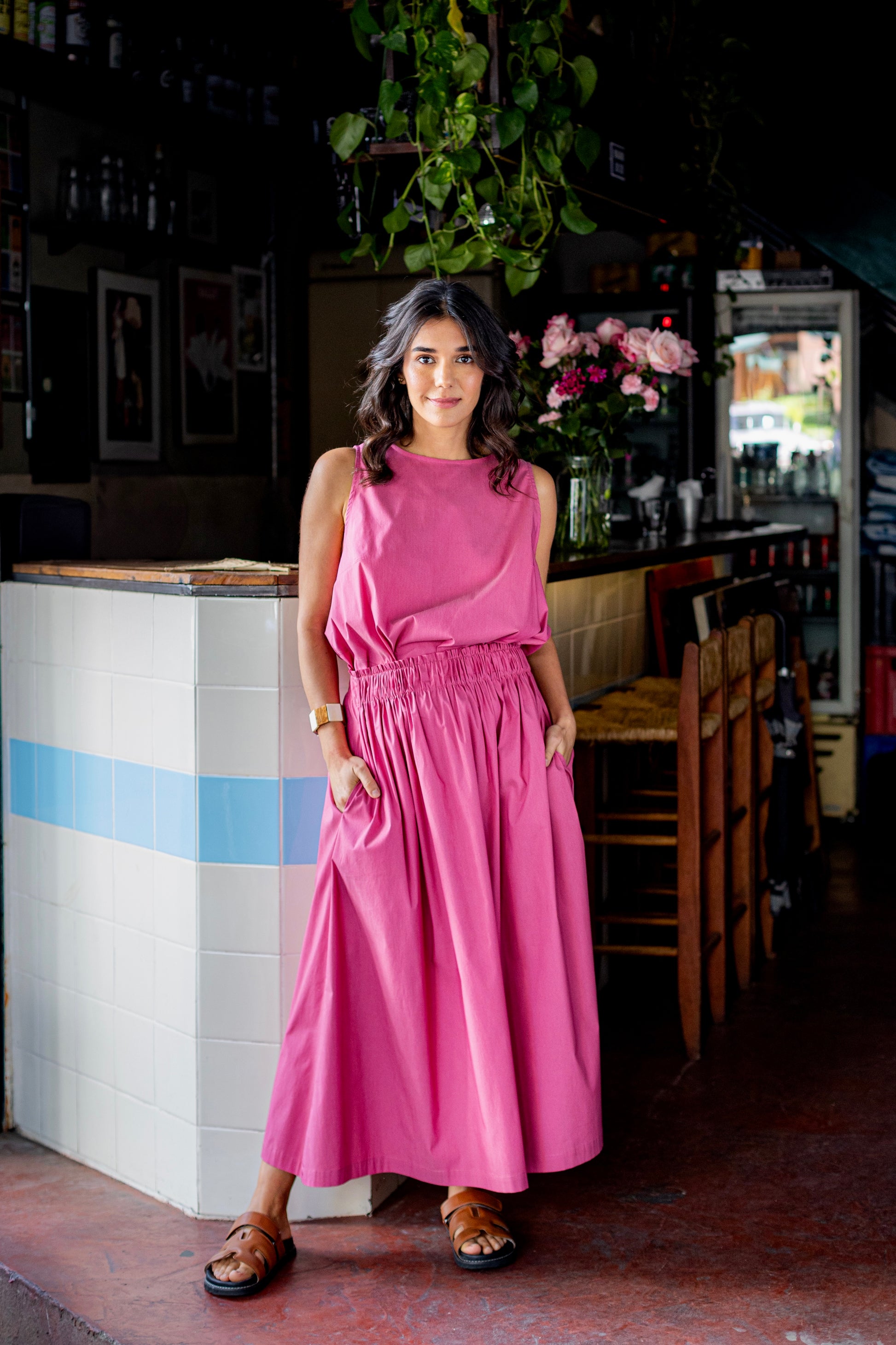 A Saia Rosa, com seu comprimento midi e elástico na cintura, oferece conforto e estilo em uma peça que se destaca pela sua feminilidade. Com bolsos laterais e um corte amplo, é uma escolha perfeita para quem busca praticidade sem abrir mão do charme. Feita com tecido premium, é uma peça versátil para diferentes ocasiões.
